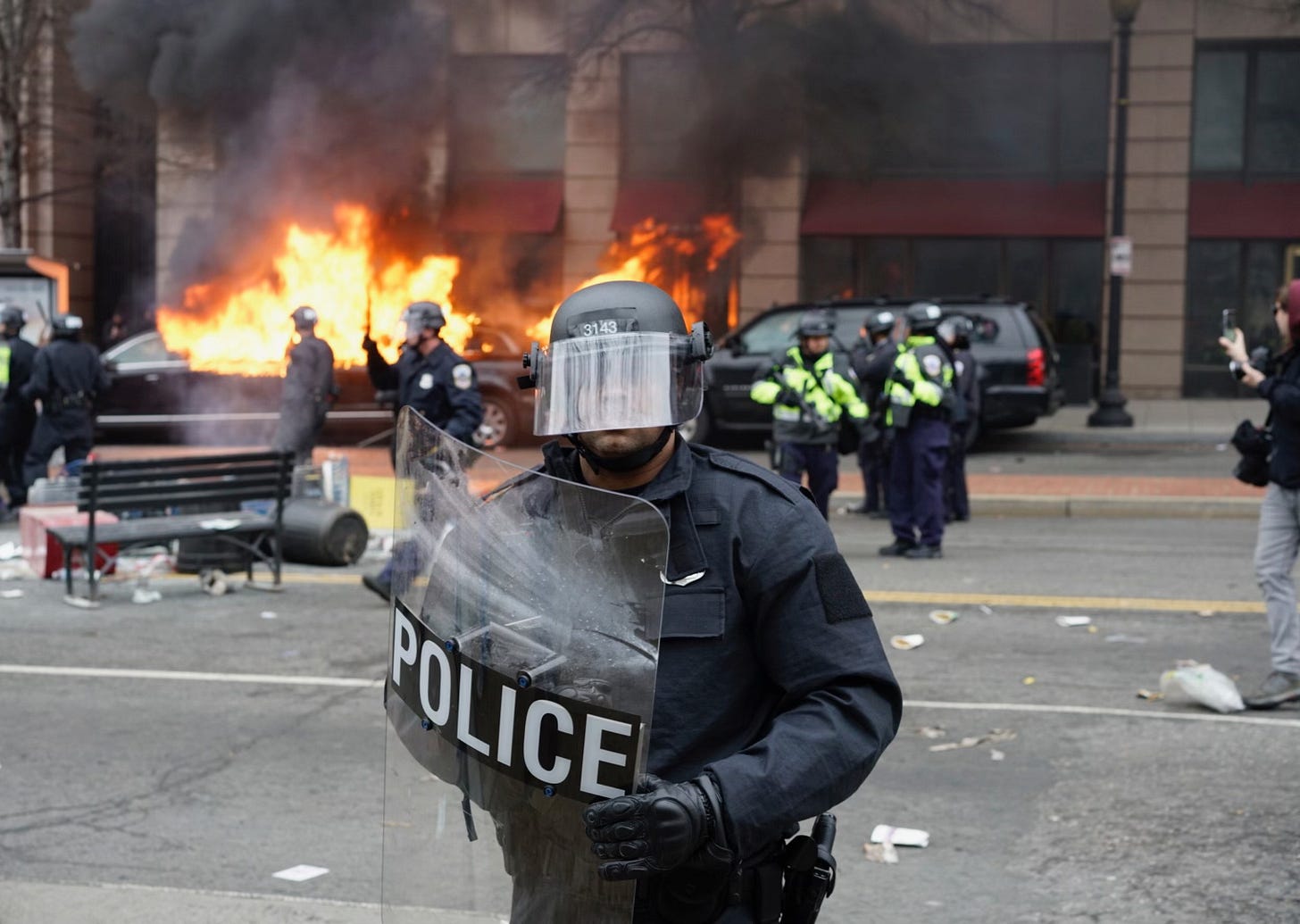 What started as small symbolic stare-downs in the center of town quickly grew into a full blown riot – with tear gas, pepper spray, rubber bullets, robocops and burning limousines.